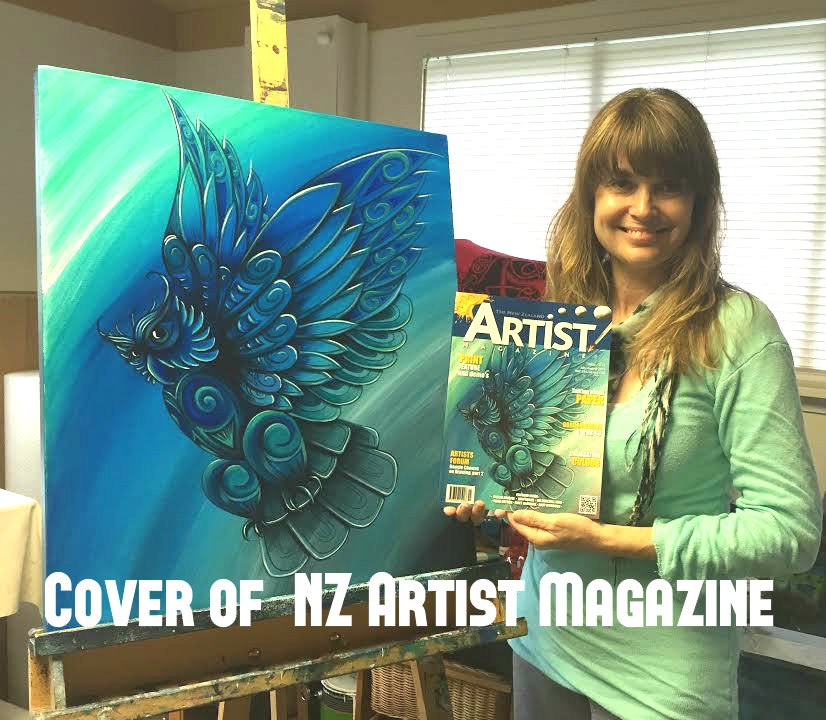 …. but also, my owl painting, ‘Guardian’,  was also featured on the COVER of The New Zealand Artist Magazine!