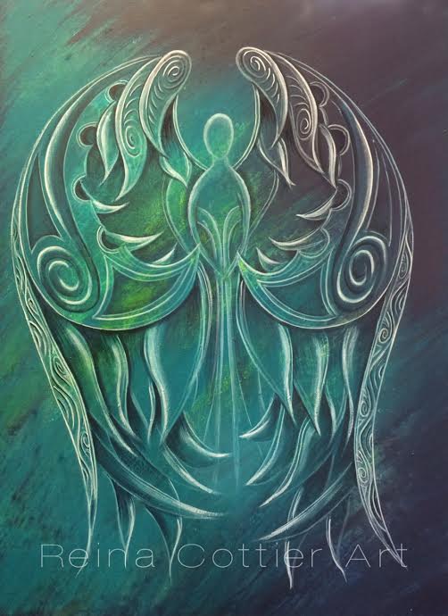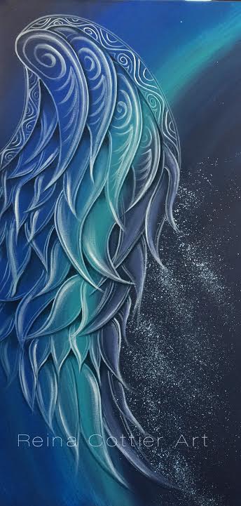 A lovely client asked me to paint her some angel wings, and after I had done those, I suddenly felt inspired to paint the three paintings Im posting here.  There is something very serene about the process in painting these, I was inclined to turn the music donw (I normally have it blasting) and didnt cope well with the phone going or anything distracting me for that matter. 🙂